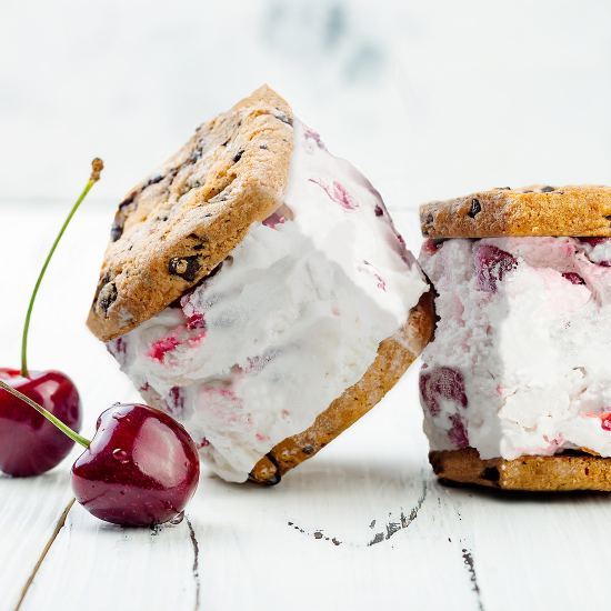 チェリーアイスサンドは北海道産のチェリーのアイスをサクサクのクッキーでサンドしたスイーツです。立方体なので大量に持ち運ぶときも便利です。 いまだけ、頑丈な箱つきです。