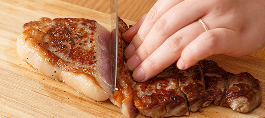 ウエルダンとは、「よく焼いた」という意味。脂肪が多い肉に向いた焼き加減です。下ごしらえの方法は同じですが、ミディアムの時よりも強火でしっかりと焼きます。